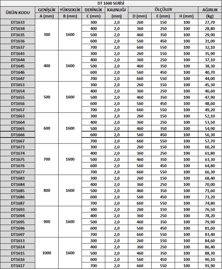 DT Serisi panolarımız dikili tip modüler gövde tasarımına sahip panolarımızı temsil etmektedir ve dikili tip pano standardımızı yansıtmaktadır. DT 1600 ise 1600mm yüksekliğe sahip olduğunu göstermektedir.